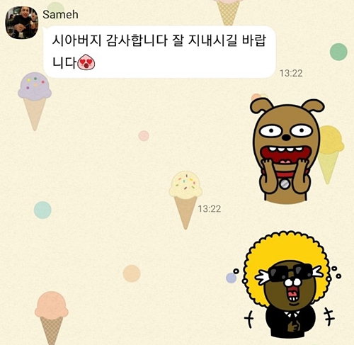 사메의 생일. 울 아부지가 생일 축하 카톡을 보내셨더라며, 그래서 한글로 잘 답장 했다고 뿌듯해하는 거였다. (믿을 수가 없어서) 뭐라고 썼나 보내 보라 했더니...