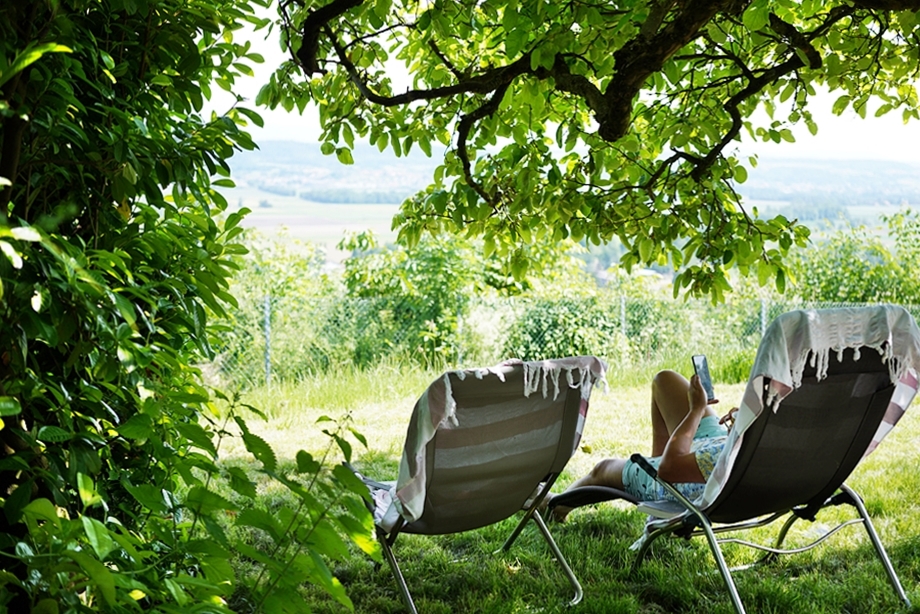 호수와 아랫동네가 내려다 보이는 정원.
