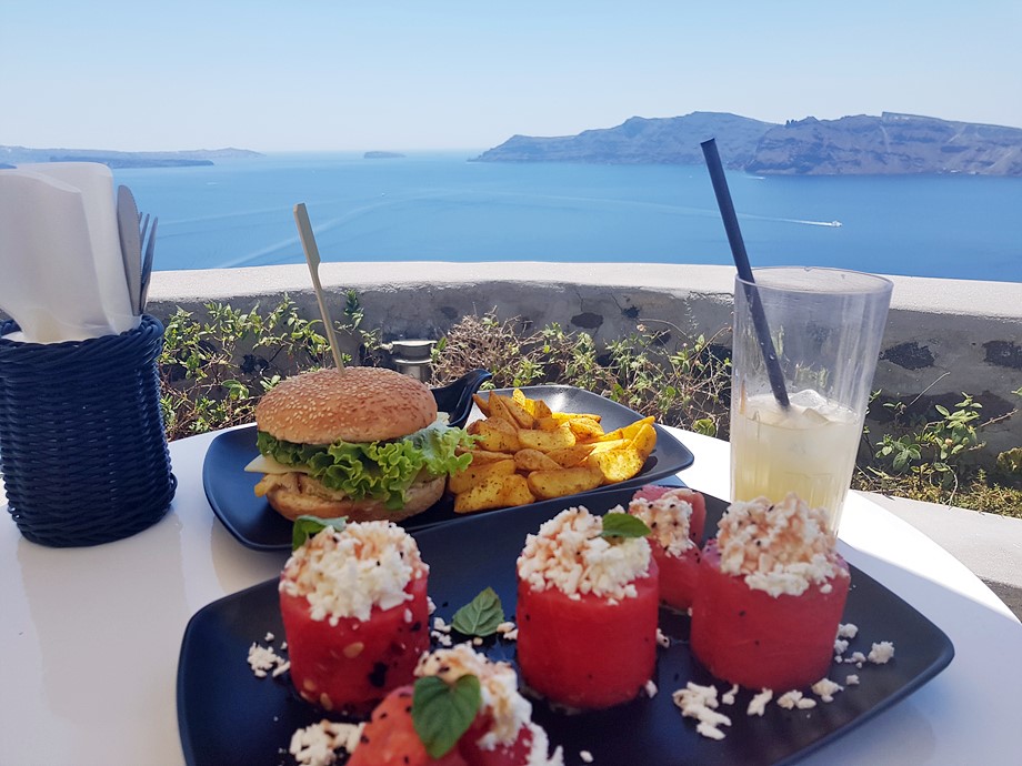 계속 먹방을 찍고 다녔건만 어째 찍은 사진은 거의 없는지 (먹은 사실을 부정하고 싶었던 걸지도 ㅋㅋ). 수영하다 먹은 스낵: 치킨버거와 원조 수박샐러드 (주먹만한 수박+ 수북수북 페타치즈).
