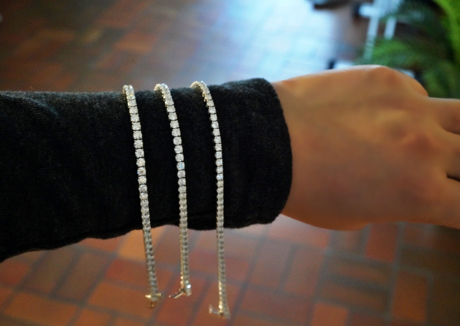 3. 테니스팔찌. 맨 왼쪽이 원래 있던 거, 나머지 둘은 새 것. 왼쪽부터 알당 0.13ct / 0.1ct / 0.07ct. 사진에선 차이 거의 안 보이지만 실물은 느낌 차이가 꽤 크다. 여기선 이런 거 하고 다니는 사람이 정말 없어서 원래 있던 팔찌가 너무 과해 보이는 것 아니겠나. 😭 회의중에 시선집중 되는거 보고 헉 한 이후로 제일 가느다란 걸로 하고 다니고 있다.