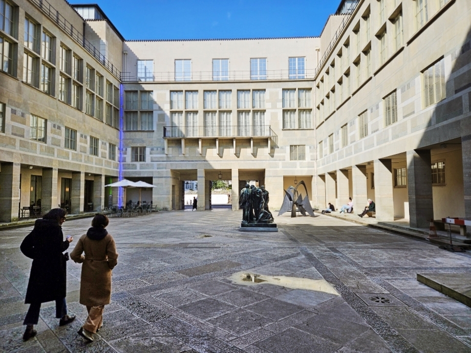 마당 한쪽에서 시선을 한 몸에 모으는 '깔레의 시민들' (The Burghers of Calais; 로댕).
