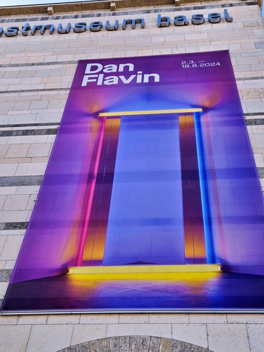 왼쪽 귀퉁이를 따라 세워진 푸르스름한 네온등은 댄 플래빈 (Dan Flavin)의 Light Art 작품 중 하나.