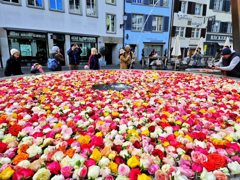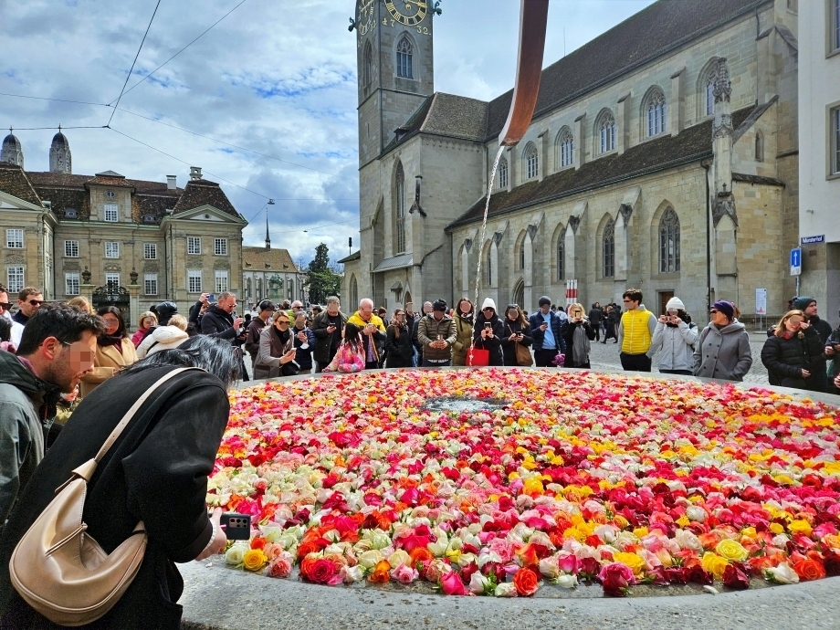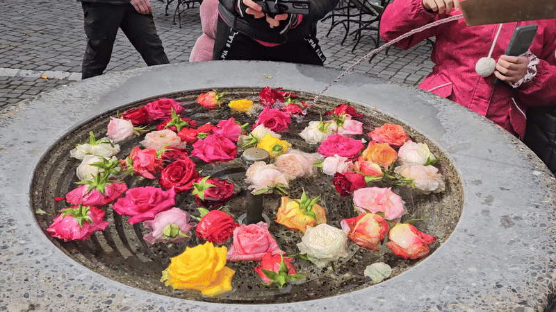 구시가지에 있는 분수들을 장미로 가득 채워놓았다. 부활절 주간에 하는 행사로, 오늘이 첫날.