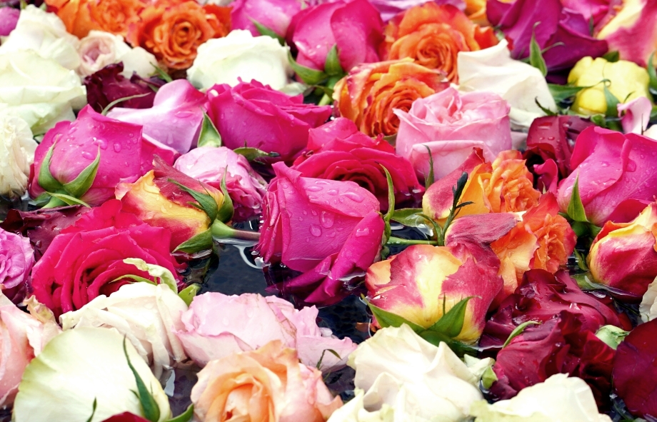 빼곡하게 들어찬 색색의 장미.
