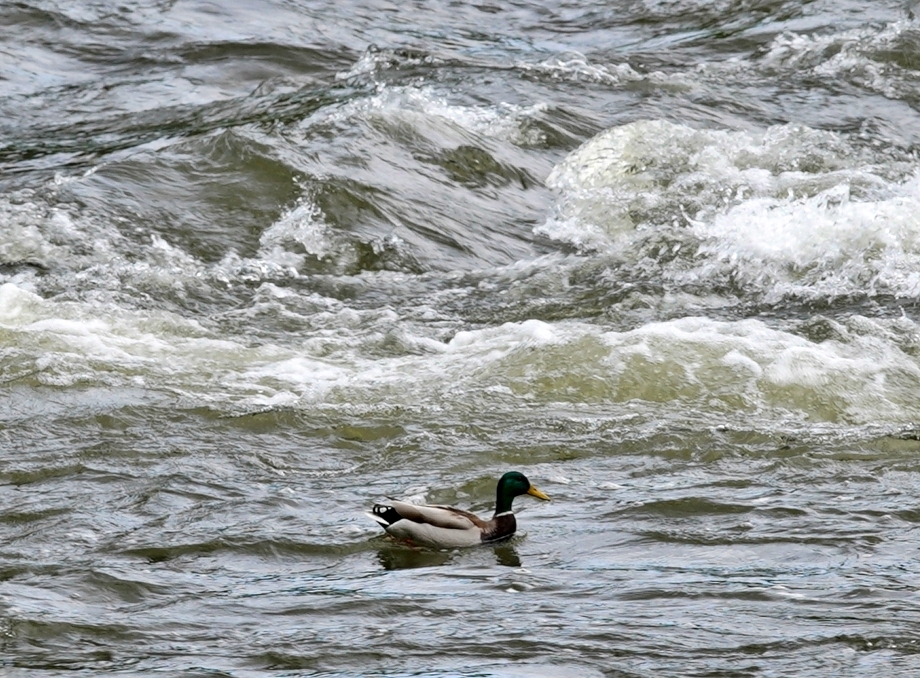 거센 물살에도 평화로운 청둥오리.