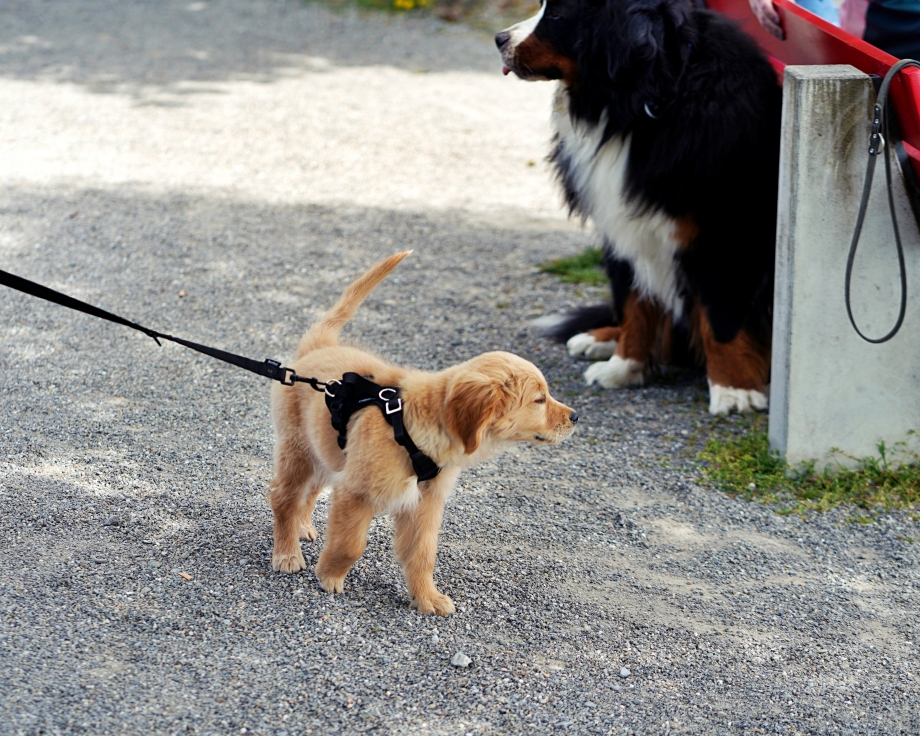 첫 산책이라는 강아지. 모든 게 신기한 듯 했다. 구엽.