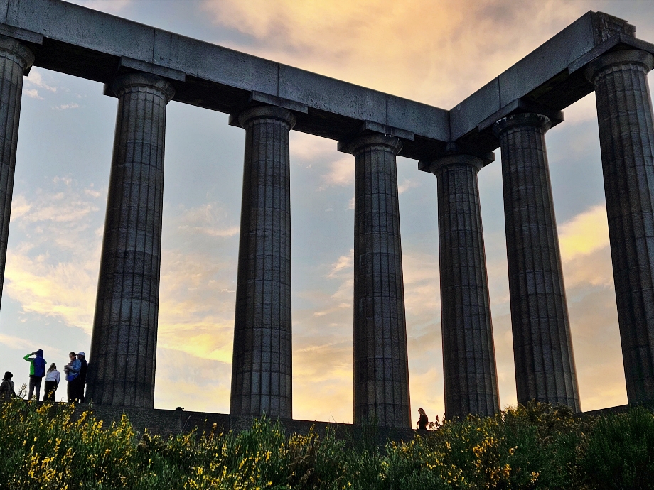 다른 날 저녁 에딘버러 칼튼 힐 (Calton Hill)에서. 노을을 보기 위해 저녁이면 많이들 찾는 모양이었다.