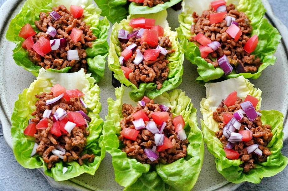 소고기 볶볶해서 타코. 또띠아 대신 베이비 상추에 싸서.