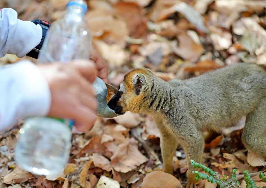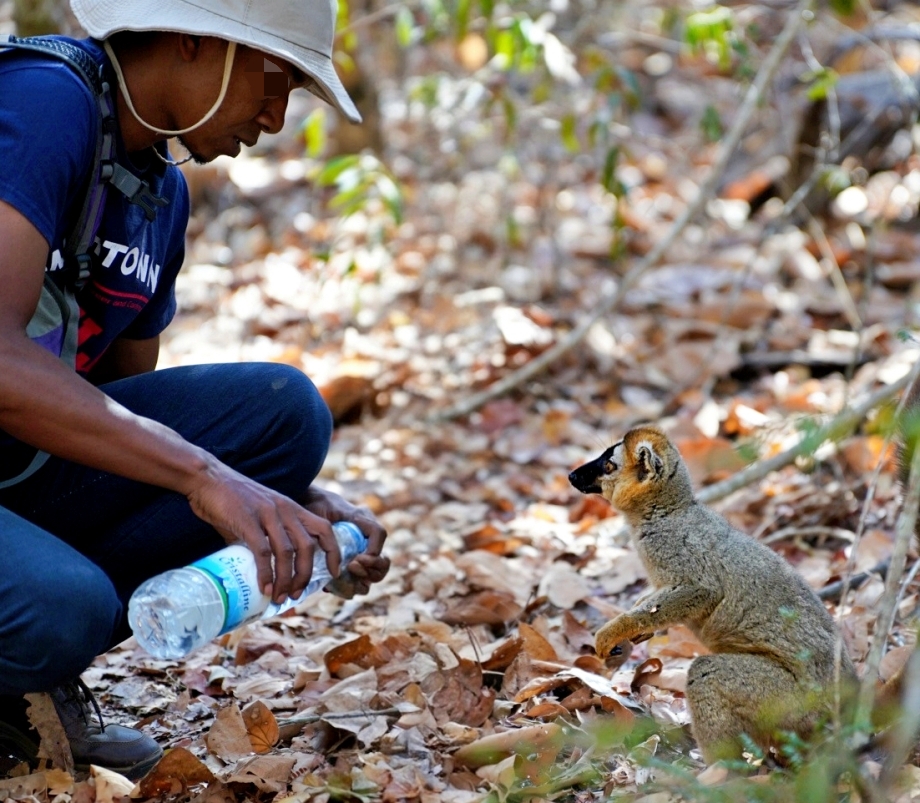 숲길을 걷던 중 물을 달라는 듯 다가오는 리머가 있었다. 가이드분과 사메가 물을 따라주자 몇 번이나 연거푸 얻어 마시고는 폴짝 나무 위로 사라짐.