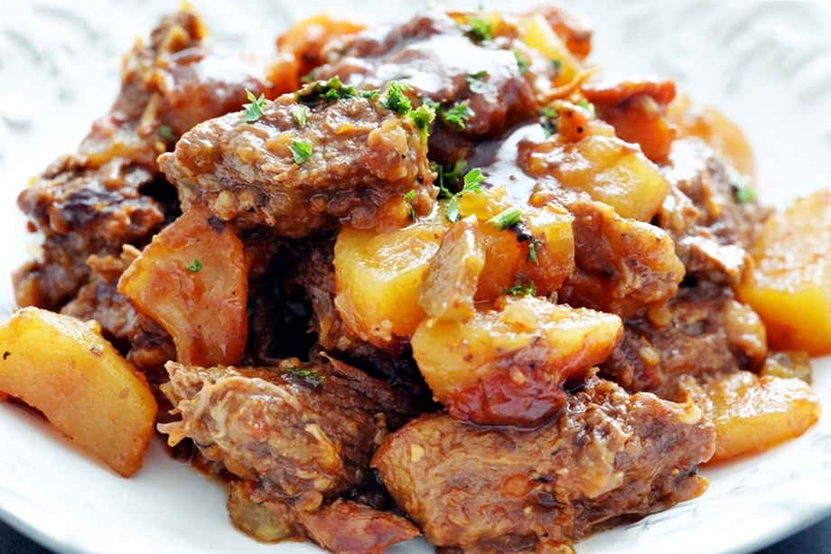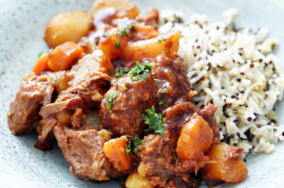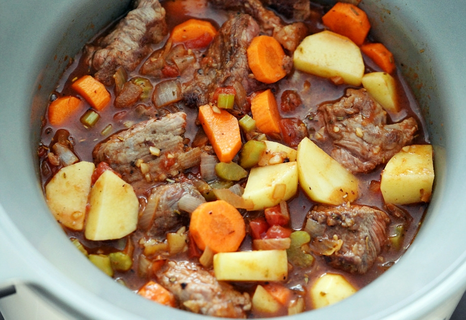 고기, 채소, 다진 토마토를 슬로우쿠커에 다 넣고 소스를 부어 4-6시간 정도 익힌다. 몇 번 얘기한 적이 있듯이 나는 슬로우쿠커를 매우 아낀다. 낮은 열로 계속 끓이는 단순한 조리기구에 불과하지만 편리한 점이 꽤 많다. 일단 고기요리의 경우 백전백승 늘 연하게 익혀줄 뿐 아니라, 익는 속도가 현저히 다른 재료들을 한꺼번에 넣어도 상관 없으며, 오래 익혀도 채소의 형체가 잘 유지된다.