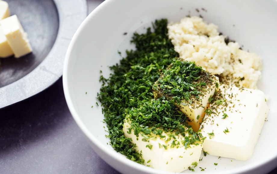 다진마늘과 다진허브를 듬뿍 넣어 잘 섞는다. 나중에 쓰고 남은 허브버터는 뒀다가 빵이나 생선 구워먹을때 써도 좋다.