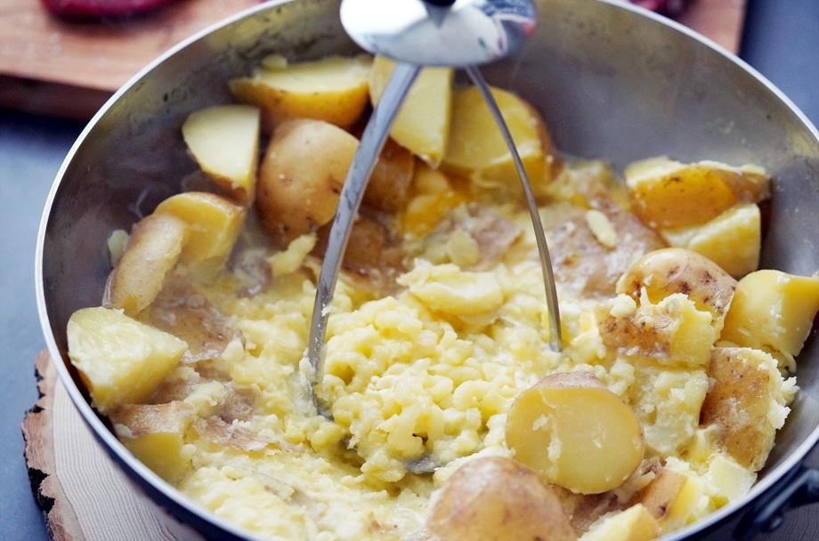 다 삶아졌으면 우유와 버터를 섞어가며 으깨고
