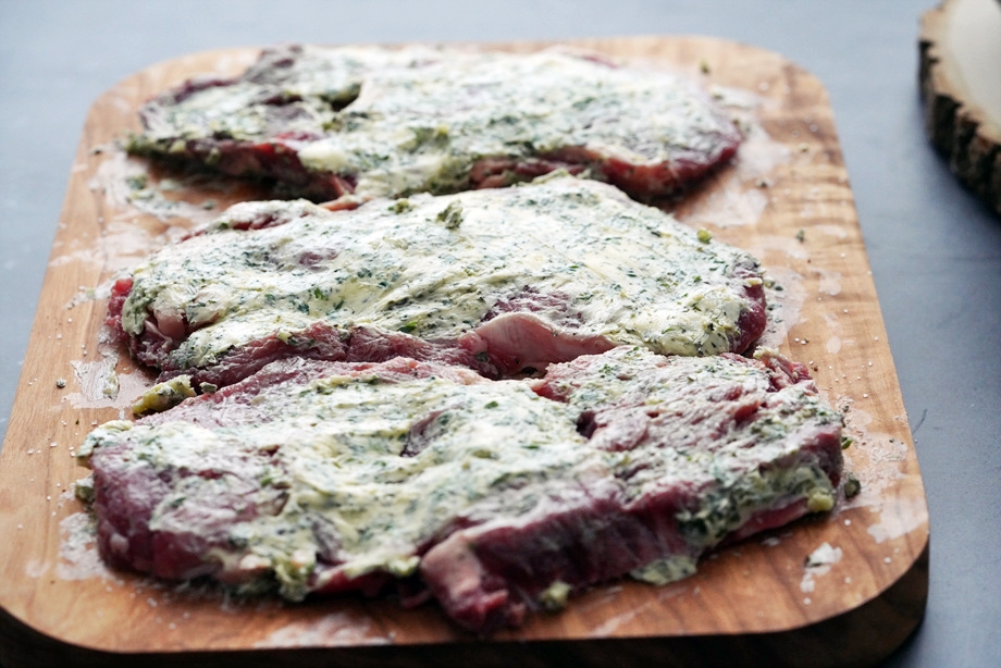 소금+후추로 밑간해뒀던 스테이크에 허브버터를 앞뒤로 충분히 발라둔다.