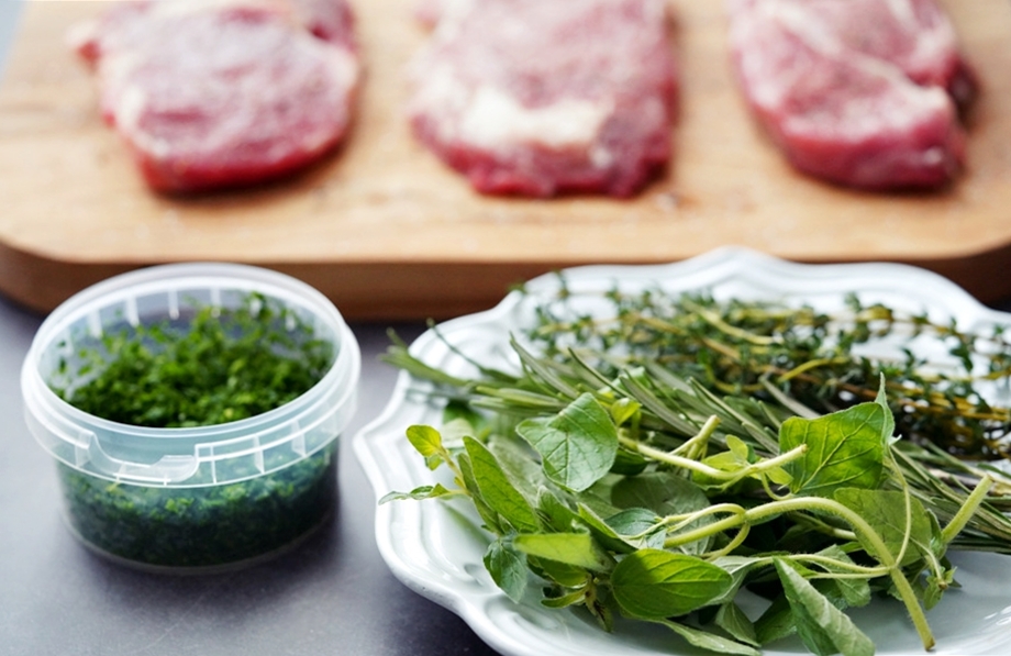 주인공이라 해도 과언이 아닐 오늘의 재료 두 가지- 허브와 버터. 허브는 파슬리, 오레가노, 로즈마리, 타임을 준비했고
