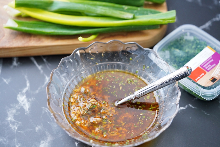 올리브오일+칠리오일+다진마늘+커민+허브+소금/후추