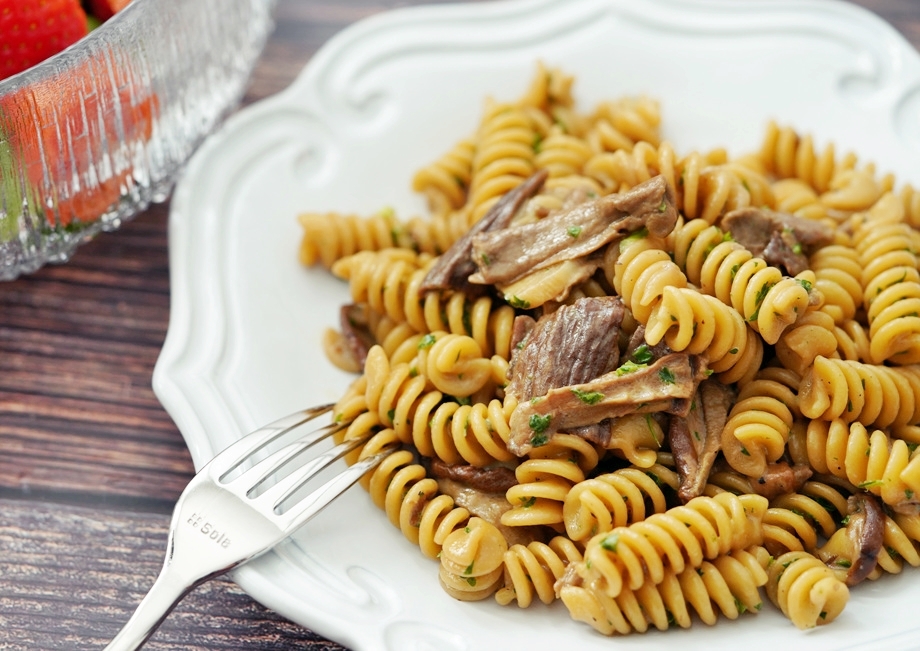 삶은 파스타, 버섯 우린 물, 소금 후추를 넣고 익히다가 국물이 줄어들면 파슬리를 뿌려준다. 기호에 따라서는 우유 (또는 크림)을 추가해서 크림소스로 만들어도 된다.