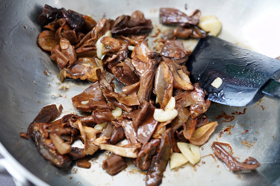 올리브기름에 마늘을 볶다가, 버섯을 넣고 좀 더 볶은 뒤