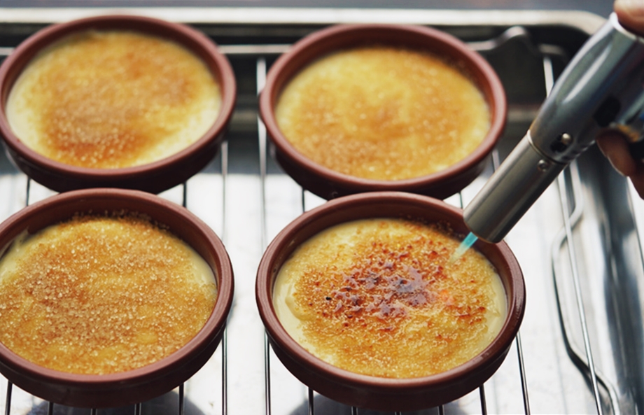 커스터드 위에 뿌린 설탕을 토치로 캐러멜화 해준다. 아 이것은.. 트램폴린 타다가 내려와 뽑기 해먹던 그 시절의 냄새.