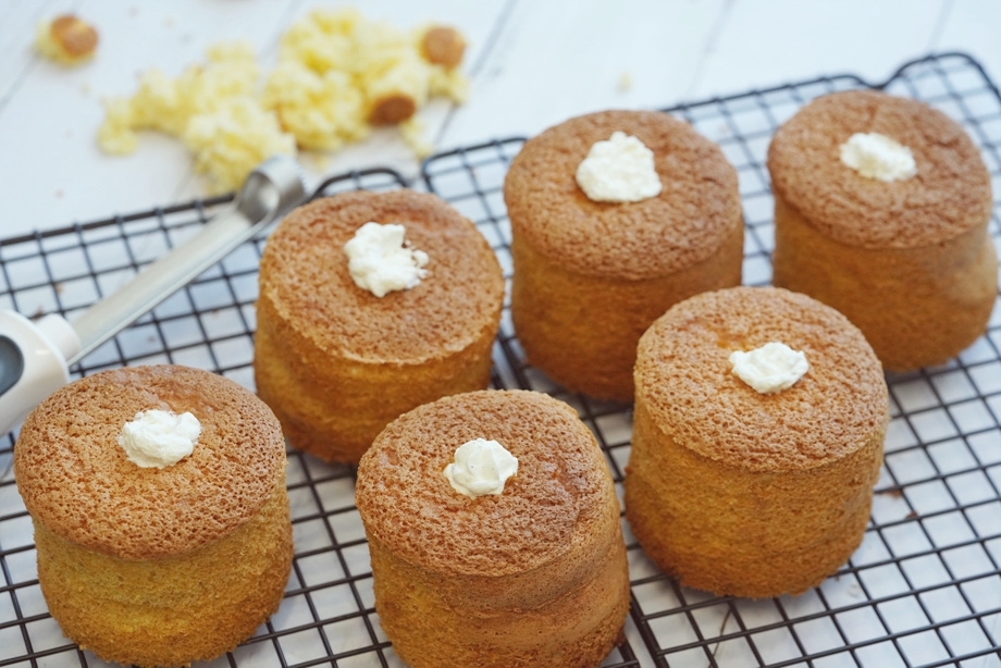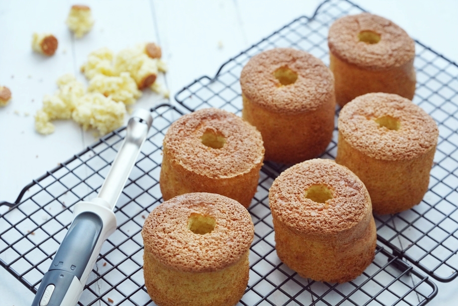 카스텔라를 식힌 후 구멍을 뚫고