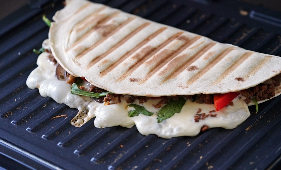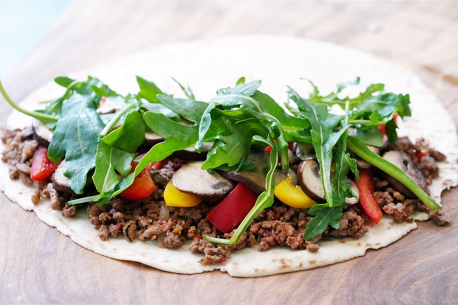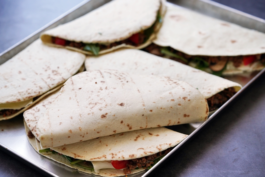 토마토 소스에 볶은 소고기, 각종 채소, 치즈를 준비했다. 뜨거운 그릴로 구워낼거기 때문에 양상추나 오이처럼 아삭하게 먹는 채소보다는 익혀도 무난한 채소를 넣는게 아무래도 편하다.