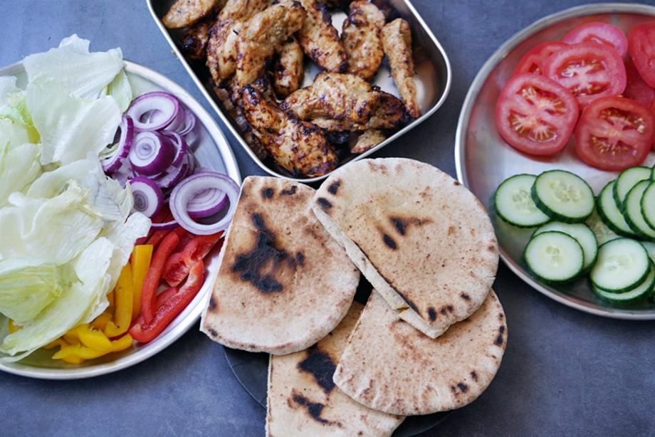 내친 김에 피타 샌드위치도 좀 만들기로 했다. 구운 닭고기와 생채소를 넣어서. 빵이 좀 탔지만 그래도 Go.