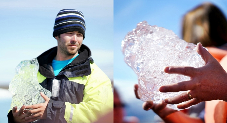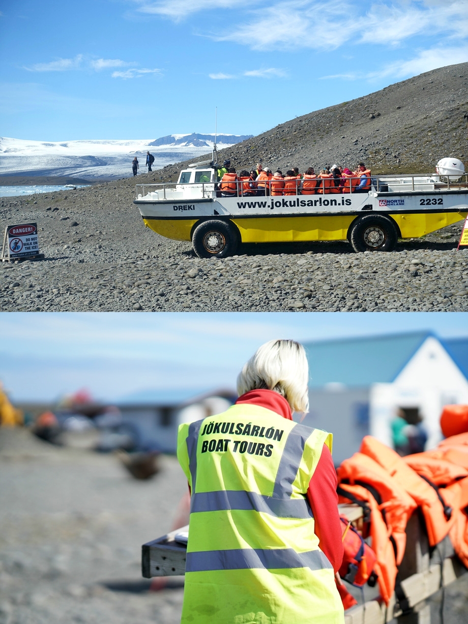 수륙양용차 형태의 보트로 빙하에 접근한다. 물론 아주 가까이 까지는 가지 못한다. 가까이에서 보니까 물에 잠긴 빙산의 뿌리부분은 겉으로 드러난 부분과는 진짜 비교도 안되게 어마어마해 보였다. 천년이 넘은 빙산이라니까 녹았다 얼었다를 얼마나 수도 없이 반복했을지. 가까이에서 보면 벌집무늬가 선명하게 보이는 얼음도 있다.