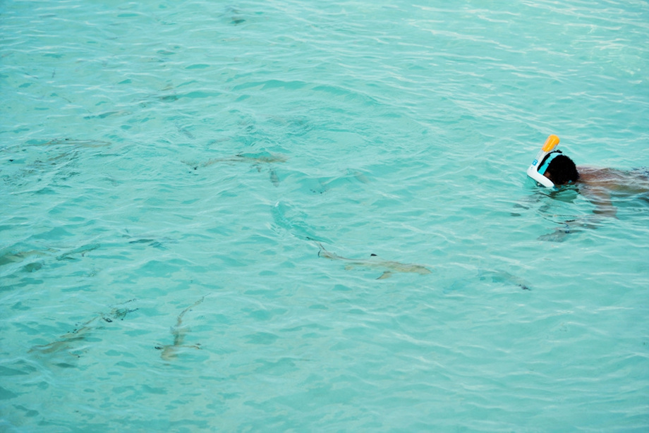 매일 오후 다섯시 반이 되면 새끼상어들이 먹이를 받아먹으러 몰려든다. 다섯시쯤부터 벌써 한마리 두마리 슬슬 모여든다. 배꼽시계 정확한 듯.