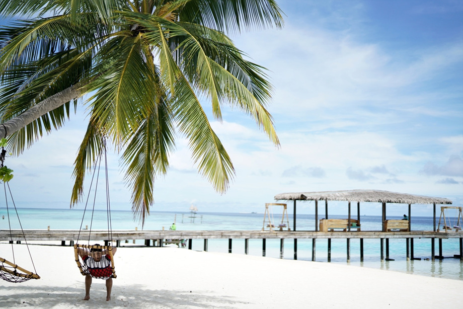 왠지는 모르겠지만 이런 빛깔의 바다는 늘 잔잔하고 햇빛에 반짝이는 모습일거라고 막연하게 생각했다. 파도가 제법 거세게 치고 있는 광경이 마치 아빠옷 빌려입은 꼬마 같아서 웃음이 났다. 몰디브의 바다도 야성적인 면이 있구만요.