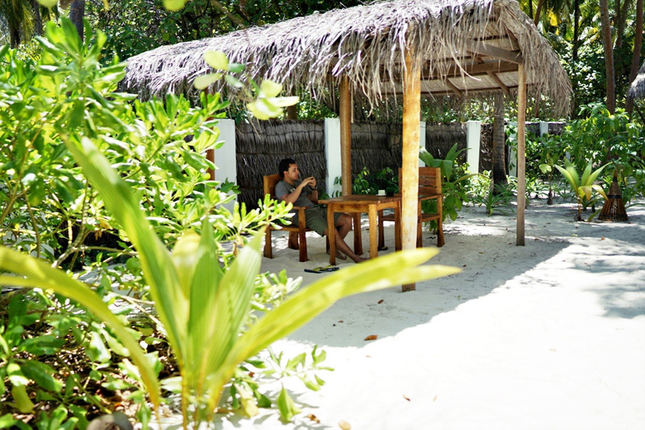 총지배인이 말하길, 이 리조트는 '완전히 새로운 컨셉의 리조트' 이자 'Real Maldives' 를 추구하기 위해 지어졌다고. 신혼부부들이 많이 가는 타 리조트들과 과연 좀 다르긴 했다. 몰디브의 상징과도 같은 물 위의 빌라 대신, 이 리조트에는 울창한 숲속 빌라만 존재한다. 방안에 있는 모든 가구와 소품들은 원목으로 만든 수제품이며 아주 최소한의 금속만이 사용되었다.