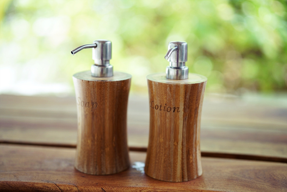비누통 로션통도 원목으로.