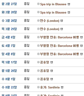 기타 자잘하게 내는 휴가, 부활절 연휴, 연수계획 등을 달력에 죽 표시해놨다.