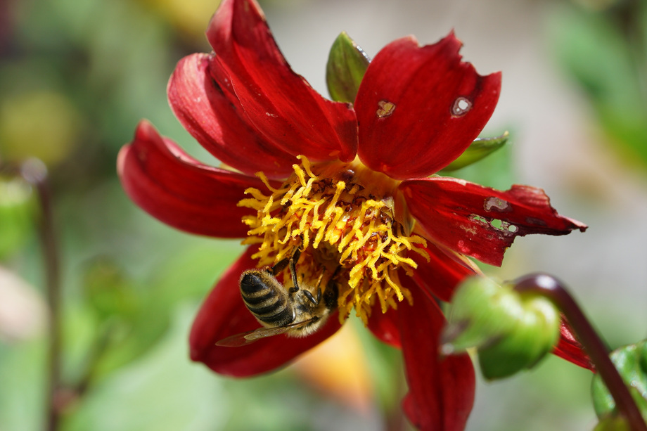 꽃마다 벌이 바삐 일하고 있길래 최근에 산 접사렌즈를 마침 시험해 보고자 하였으나...