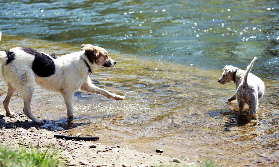 막대기는 옆에 잠시 모셔두고 물장구에 몰두하기 시작한 녀석들. 기다리던 견주는 햇빛 아래 낮잠에 빠져드는데. ㅎㅎ