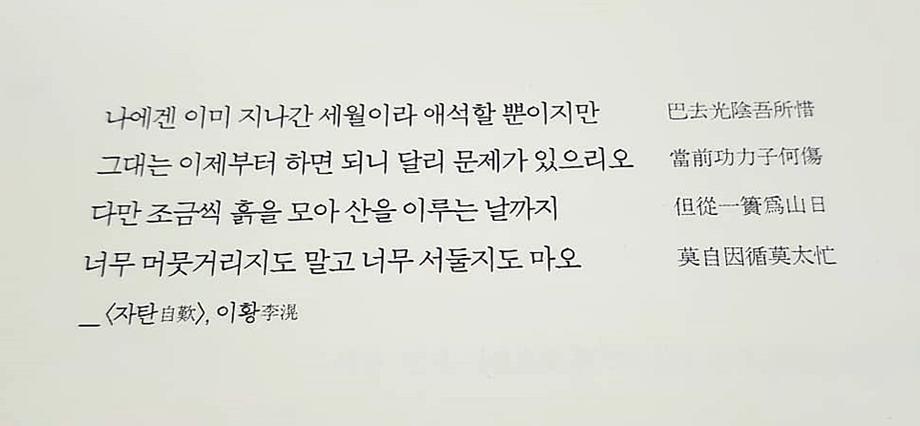 퇴계 이황이 한 제자에게 선물했던 시라고 한다. 그때 그의 나이 64세.
