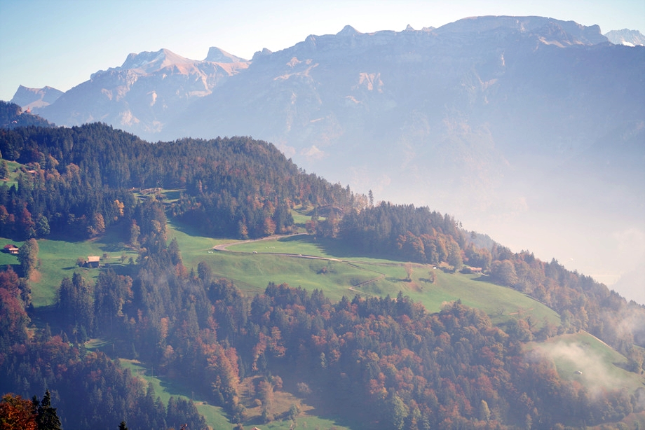 목적지는 베아텐베르크(Beatenberg). 인터라켄 서역에서 버스로 30분 가량 올라가면 나오는 작은 산골마을이다. 유명 관광지인 인터라켄 동역과는 반대편이라 한산하고 조용하다. 풀 뜯는 소나 양들이 전부인 것 같은 마을.