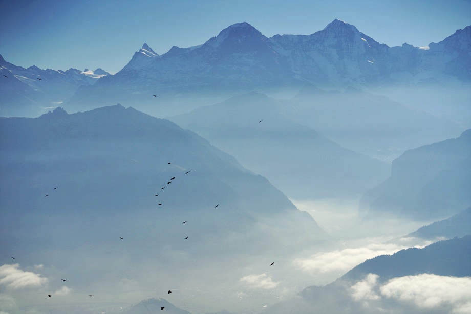 원래는 저 아래로 툰 호수가 보여야 하지만 구름층은 좀처럼 걷히지 않았다. 나름 신선뷰 같아서 나쁘진 않았지만서도.