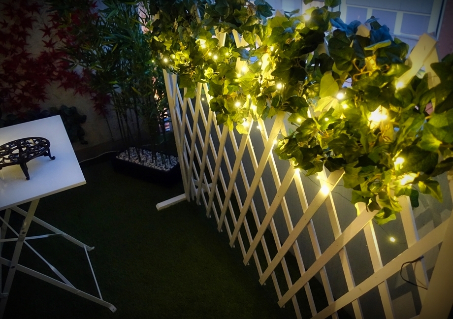 생전 안 오던 가림막도 드디어 왔다. 조그만 태양광 전구를 감아놨더니 쪼그만게 생각보다 밝다.