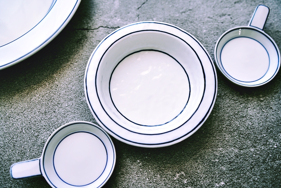 한 번쯤 써보고 싶었던 김석빈 도자기 블루라인. 그릇장에 도저히 자리가 엄써서 미루고 미루다 몇 개만 사봤다.