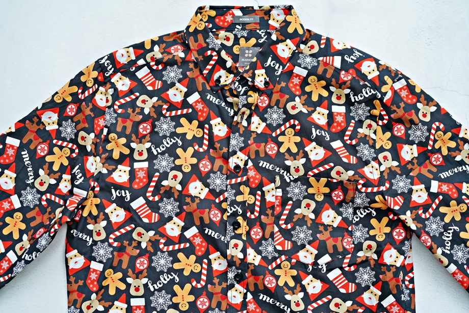 사메가 (또) 산 알록이 달록이 셔츠. 크리스마스 저녁식사때 입겠다며.
