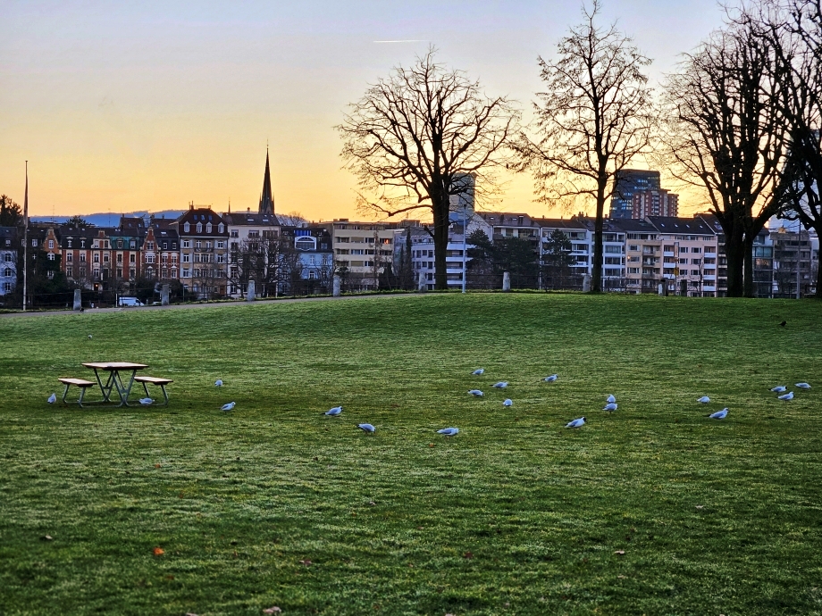 한 정거장 먼저 내려 좀 걸었다. 집 근처 라인강변 산책로.
