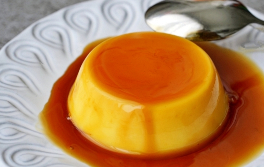 후식은 캐러멜 푸딩 시판품 키트. 우유에 섞어 끓이다 식혀만 주면 끝.