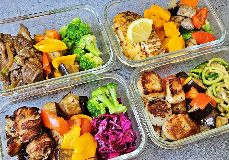 (왼쪽부터 시계방향으로) 소고기+구운채소+데친 브로콜리
