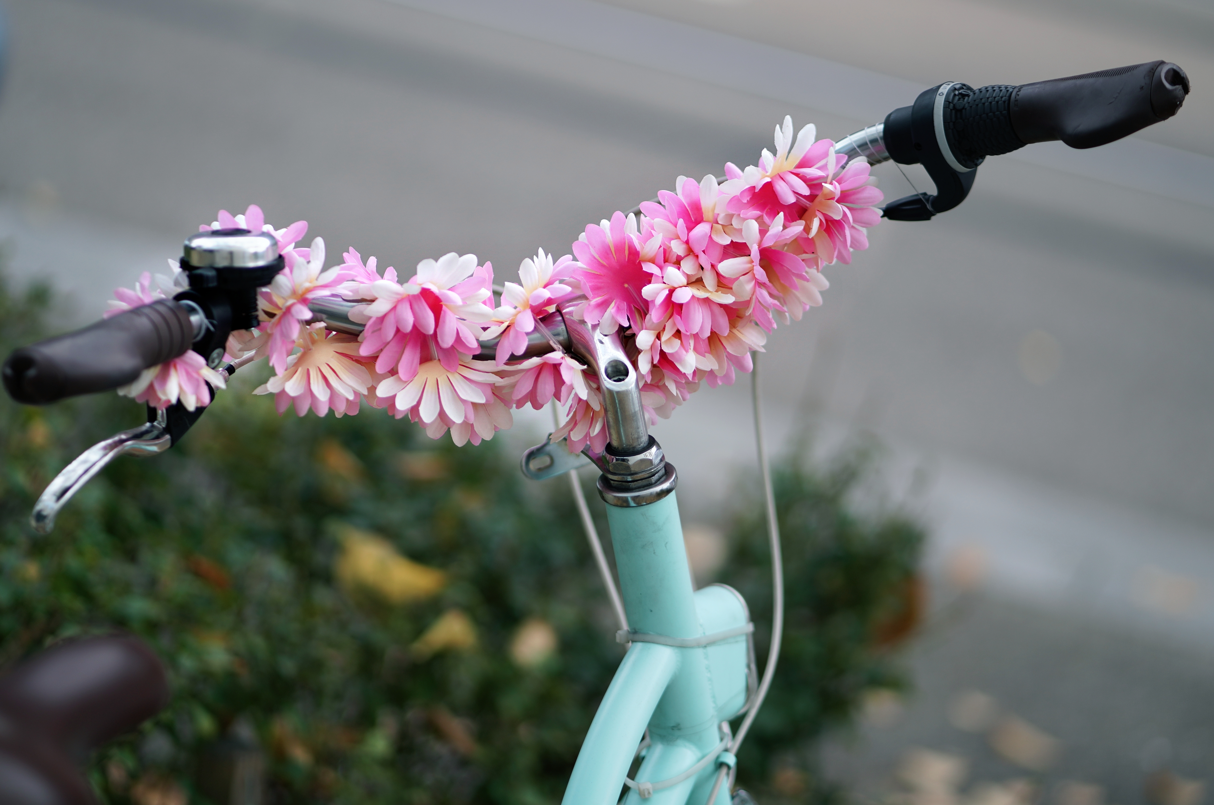 꽃핸들이 달린 민트 자전거. 왠지 메리 포핀스를 닮은 주인일 것 같은.