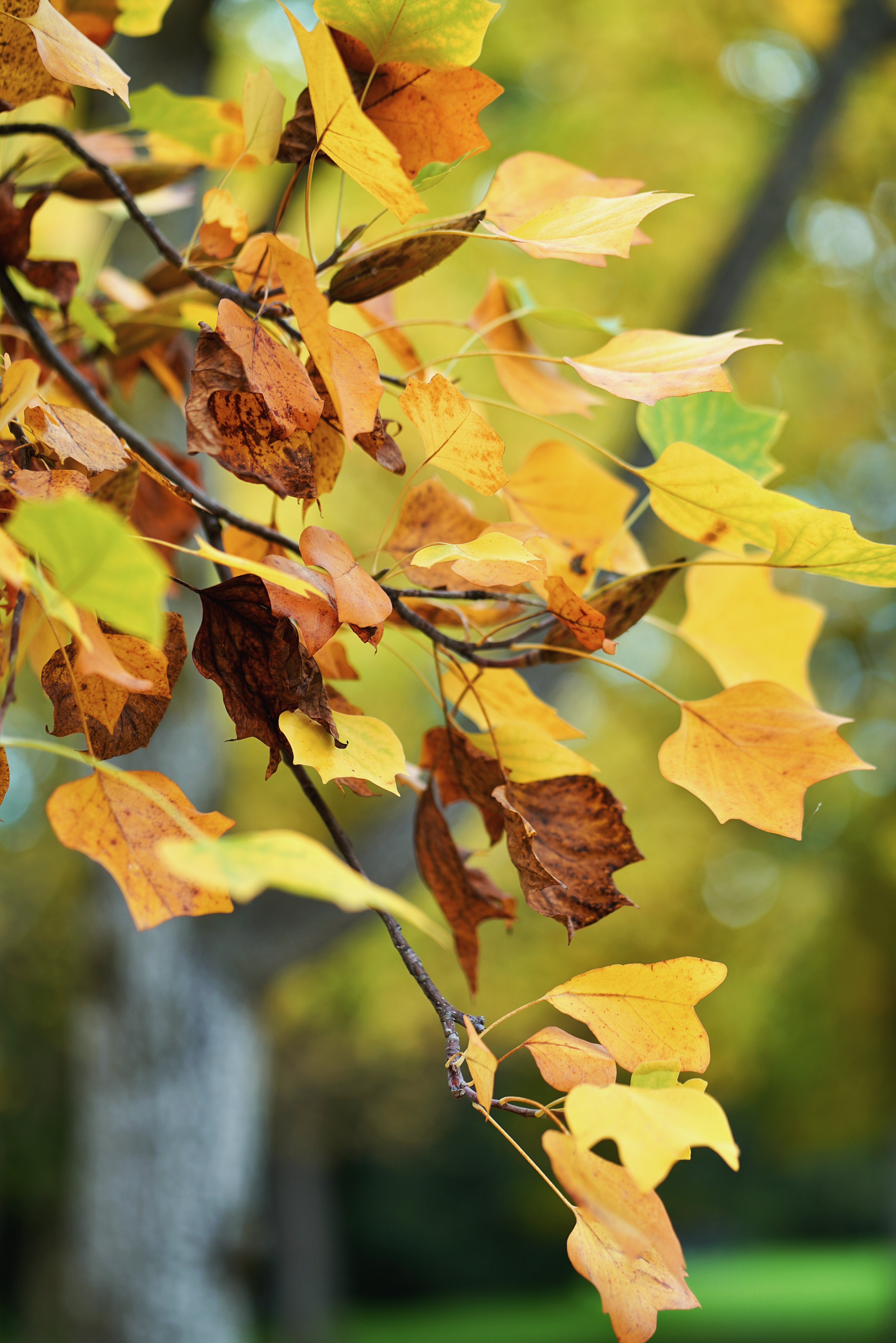 아직 푸른 잎, 노랗게 절정인 잎, 그리고 누렇게 말라가는 놈. 한 나무 내에서도 각자의 시간은 참으로 제각각.