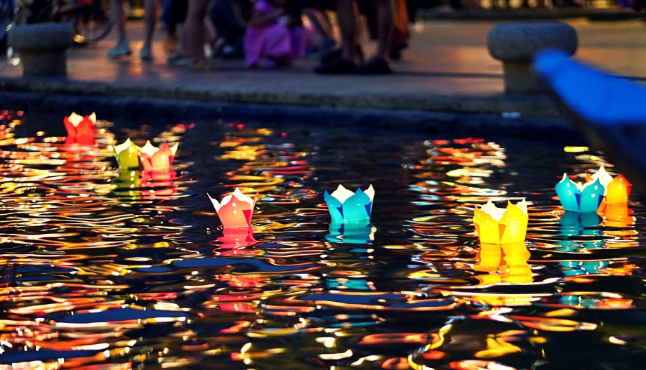 초를 띄우며 소원을 빈다.