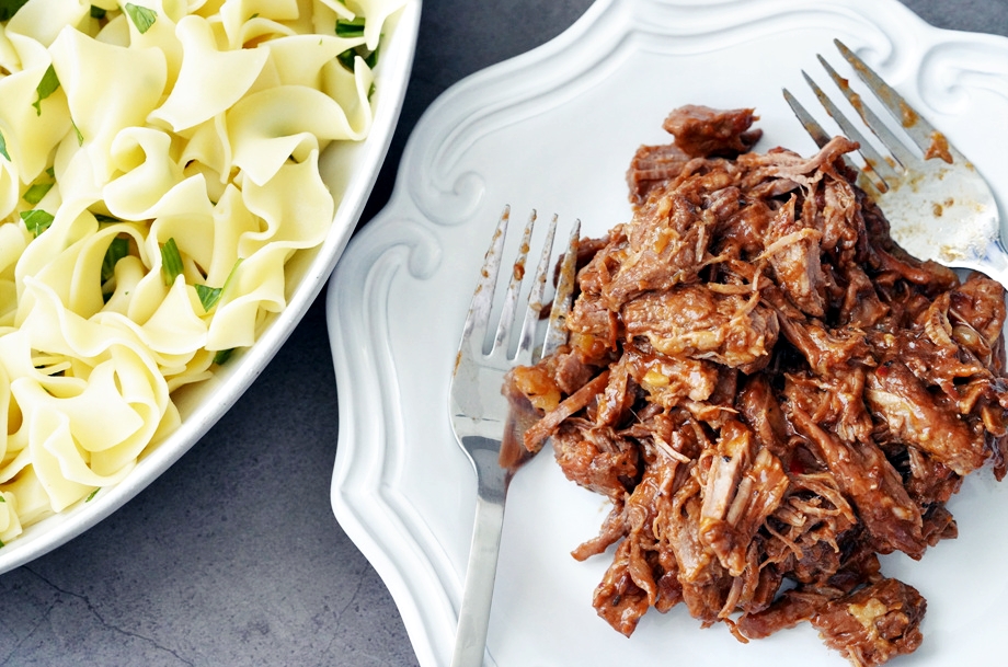 익은 고기는 연해서 잘 찢어지므로 삶은 파스타에 소스로 얹어 먹을 수도 있다.
