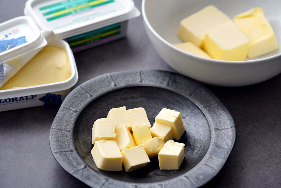 버터는 부드러워지도록 실온에 미리 꺼내둔다. 오늘은 특별히 좋은 버터도 꺼내 썼다. 비싼 버터와 일반 요리용 버터의 차이는, 신선한 크림 100%로만 만들고 얼리지 않는 (비싼 버터) vs. 크림+치즈 부산물로 만들고 운반시 얼린다는 데 있다고 한다. 맛의 차이는 요리에 넣을땐 사실 크게 못 느끼겠는데 빵에 바로 발라 먹을때 보면 비싼 쪽이 더 creamy 하고 신선한 맛이 난다.
