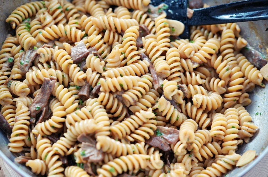 삶은 파스타, 버섯 우린 물, 소금 후추를 넣고 익히다가 국물이 줄어들면 파슬리를 뿌려준다. 기호에 따라서는 우유 (또는 크림)을 추가해서 크림소스로 만들어도 된다.