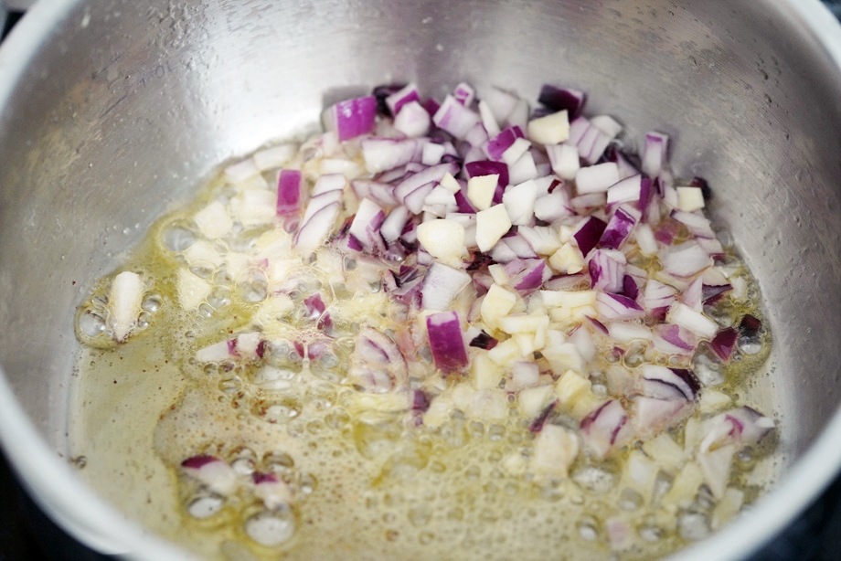 잘게 썬 샬롯과 마늘을 버터+ 올리브기름에 볶다가