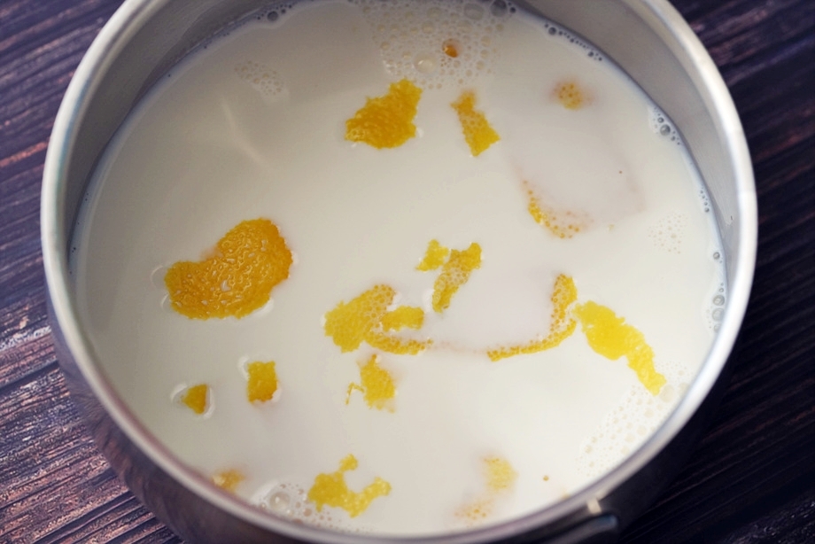 바닐라와 레몬향이 우유에 잘 우러나도록 약불에서 끓인다.